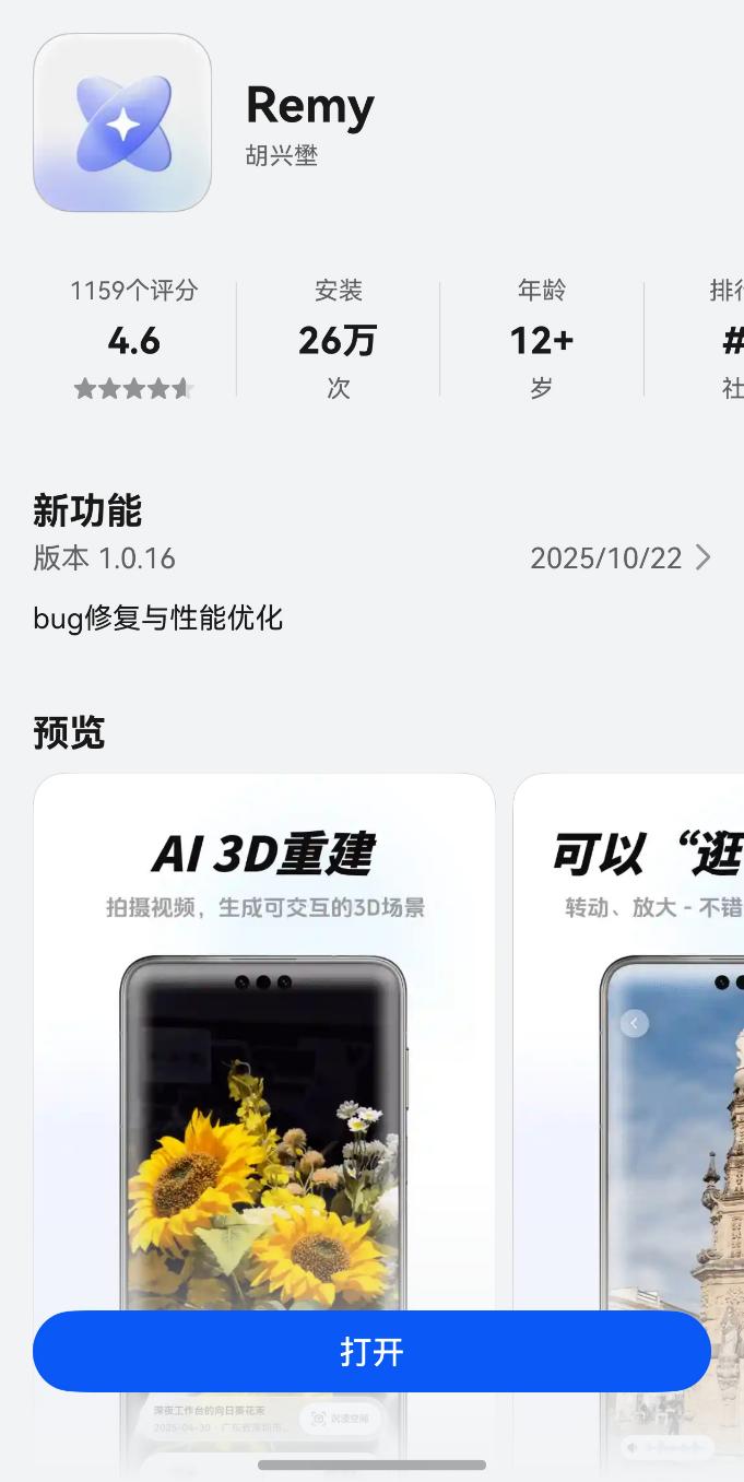 那么问题来了,这Remy到底啥来头,能有这么大魔力?简单说,它是一款3D影像内容记录App,而且是HarmonyOS 6独家首发!