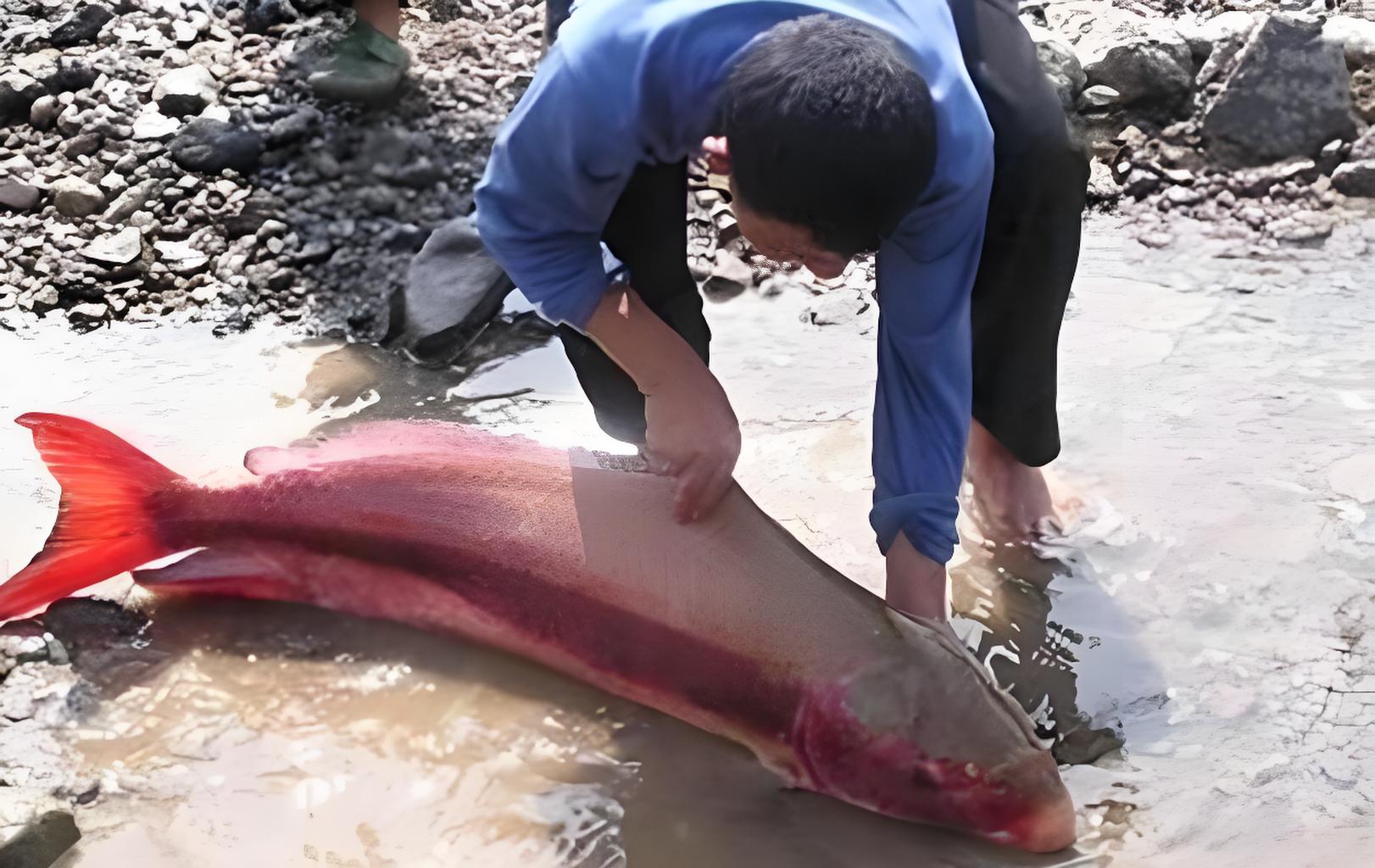不过,这还不是它的极限!真正的“巨无霸”记录诞生在2021年9月14日。在涪陵长江大桥附近,一条体长达到惊人的1.3米、体重26.5公斤(53斤!)的巨型胭脂鱼被捕获了!更让人唏嘘的是,这还是一条即将当妈妈的雌鱼!可惜,捕获它的是个偷猎者,结局可想而知... 这个记录,让我们看到了胭脂鱼在三峡库区巨大的生长潜力。